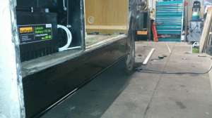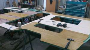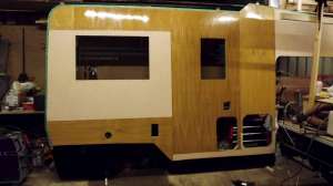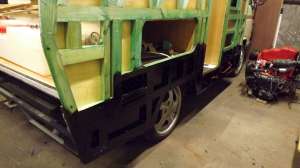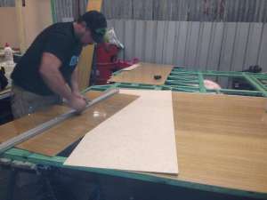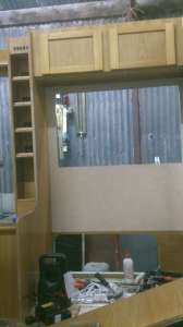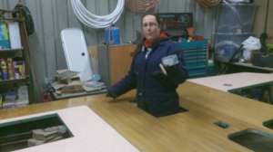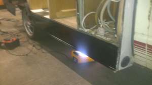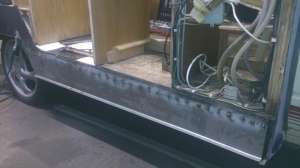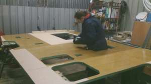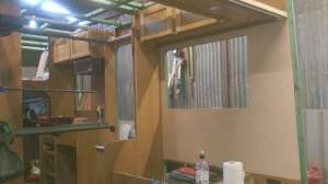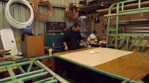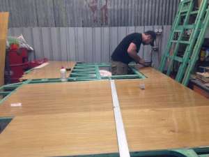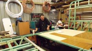 Clare applying Briwax to the wallboards. Briwax cleans and polishes. |