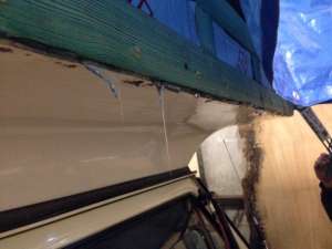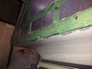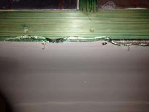 between the framing and the fibreglass base. When dry cut the excess off. |