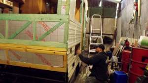 Refitting the nearside side ali panels. As always, the first panel is the top