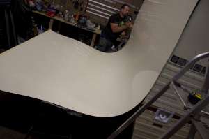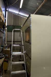 Nearly there. Fitting the front window holds the ali flat.