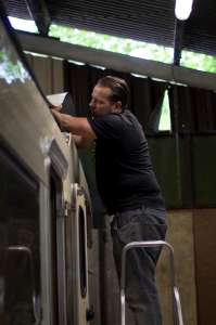 Inside the overhead cab! |