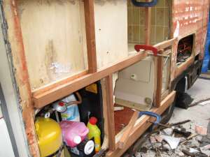 So the bathroom wall is ripped out.
