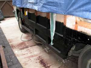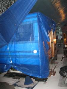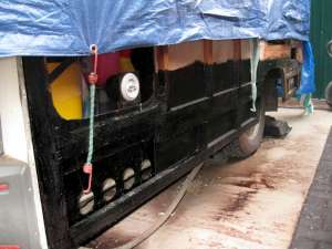 Under the protection of the tarpaulin, work is started on the off-side bottom.