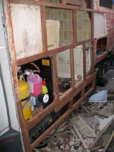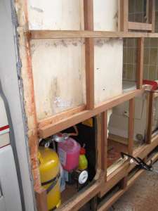 This is the kitchen wall where the lower section is being replaced. |