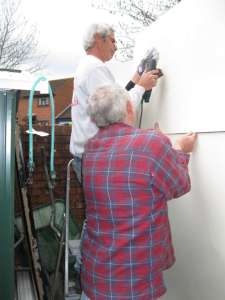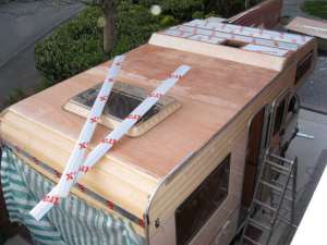 Screwing the 9mm plywood to the framework. |