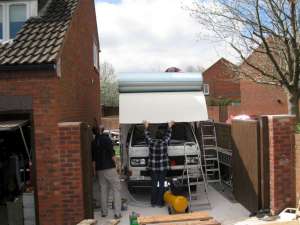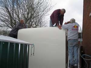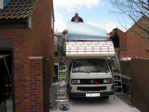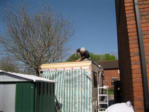 the 7 metre roll is lift onto the roof. |