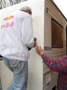 Applying sealant to the edges. |
