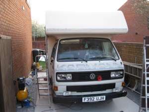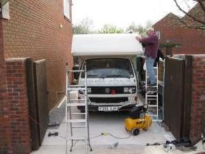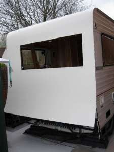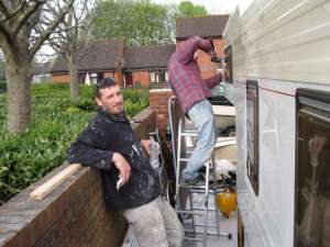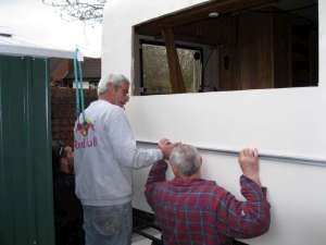 Removing old sealant from the lower edge ready to bend the panel end. |
