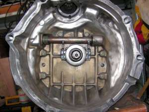 The modified gearbox with the HA Projekt input shaft and new thrust bearing. |
